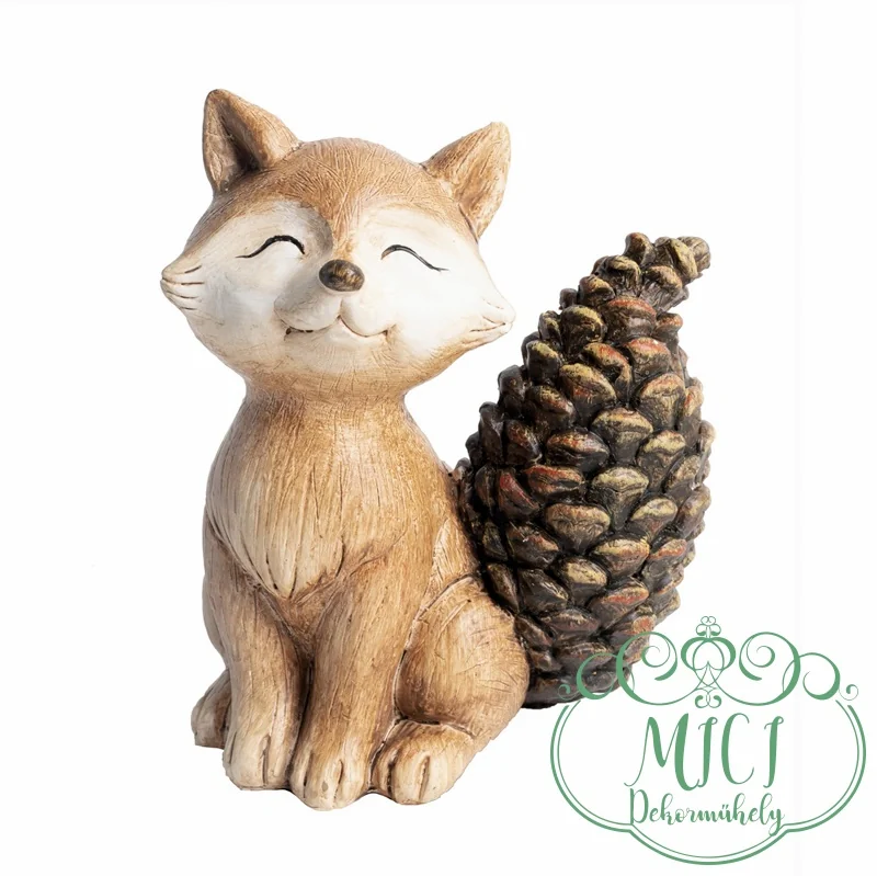 Őszi figura; róka ;toboz mintás farkinca; ülő; barna; kerámia; 12,7*10,5*7cm