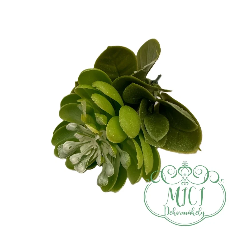 Szeretsz kreatívkodni? Önmagad készíted el lakásdekorációdat? Akkor nálunk jó helyen jársz. Ezekkel a pozsgás zöld növény részekkel; ágacskákkal; levelekkel feldobhatod koszorúidat, kopogtatóidat, asztaldíszeidet, és bármi más lakásdekorációdat. A terméket kis kiszerelésben vásárolhatod meg. Így igazán egyszerűen tudsz változatos dekorációt készíteni. Nem kell attól félned, hogy olyan művirágot rendelsz, amelynek bazári kinézete van, hiszen cnálunk csak a prémium minőségű műnövények árhetőek el a webáruházunkba. Mivel több gyártóval és importőrrel vagyunk kapcsolatban és nagy volumennel dolgozunk, igazán kedvező árban, olcsó művirágokhoz juthatsz hozzá prémium minőségben.