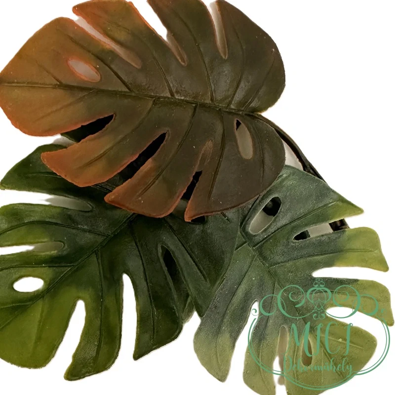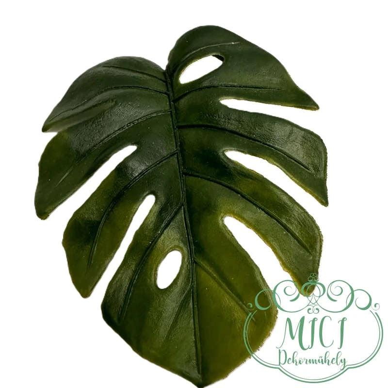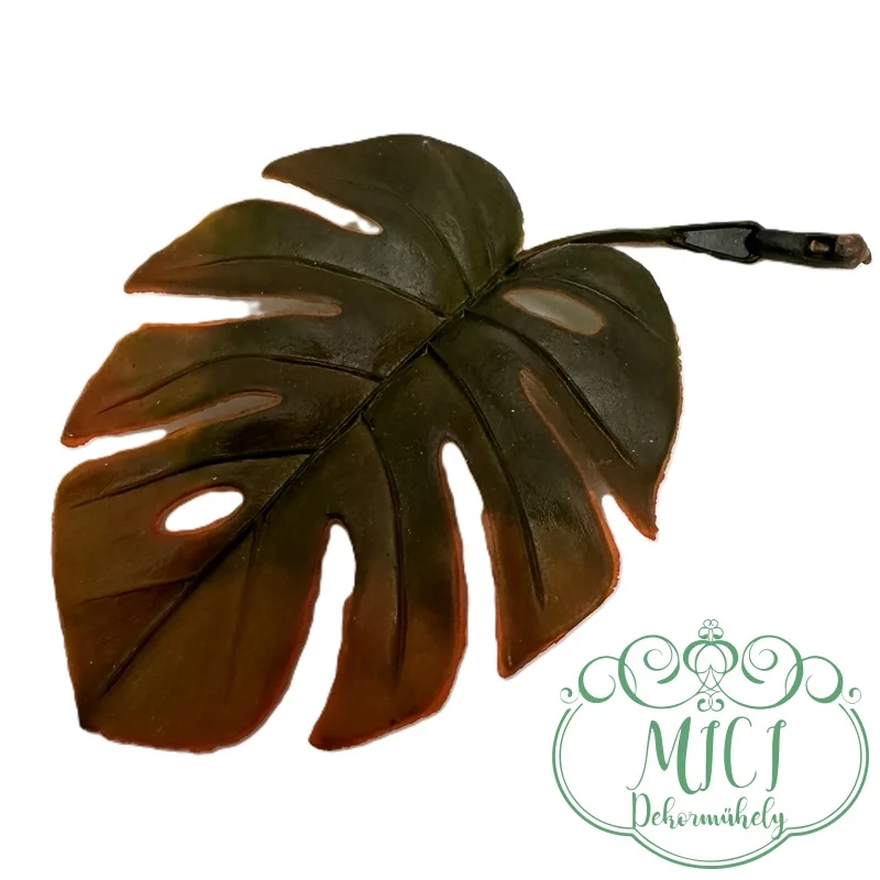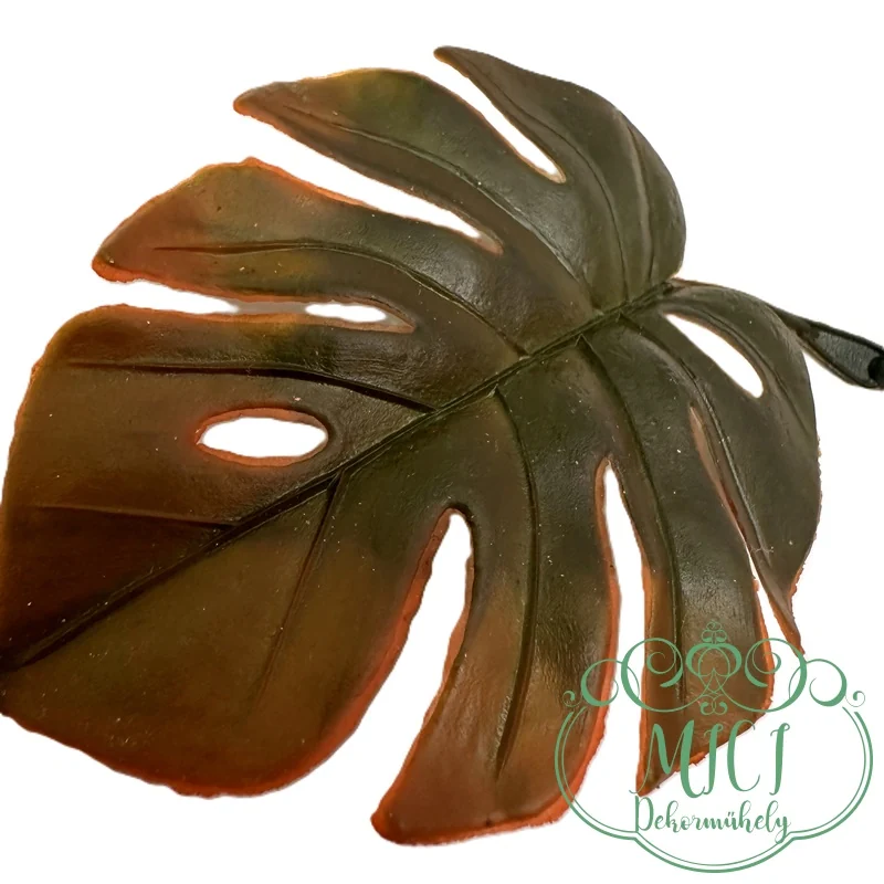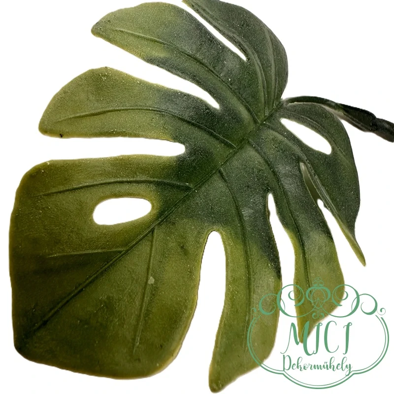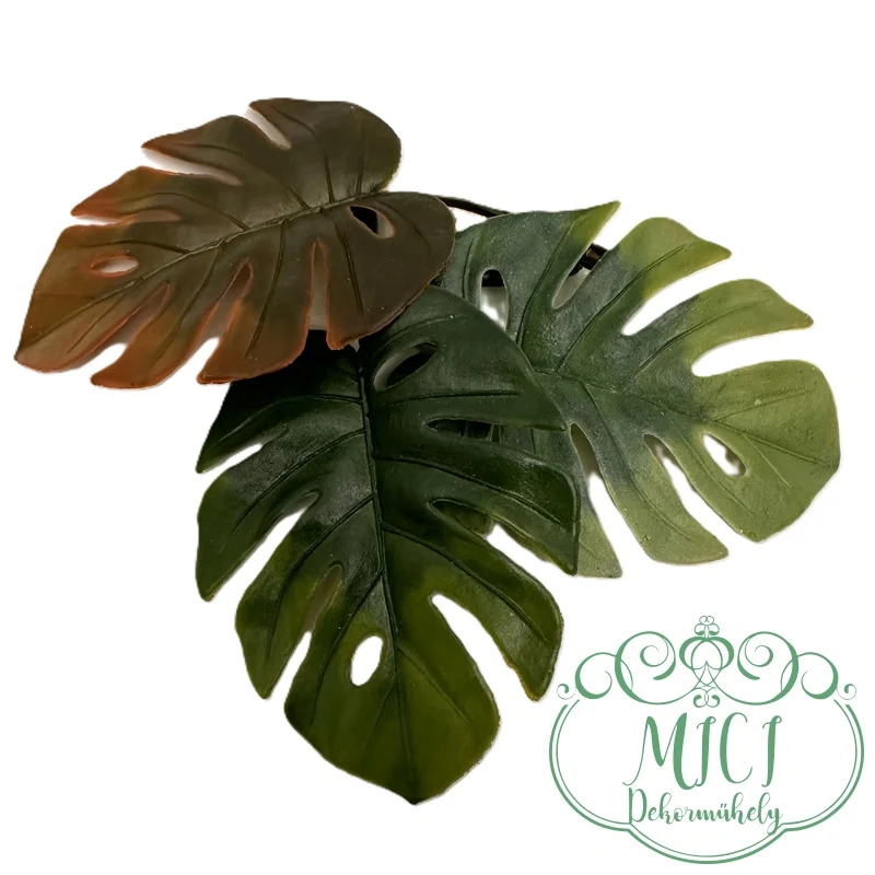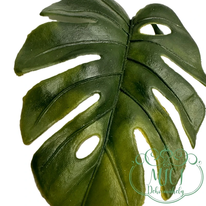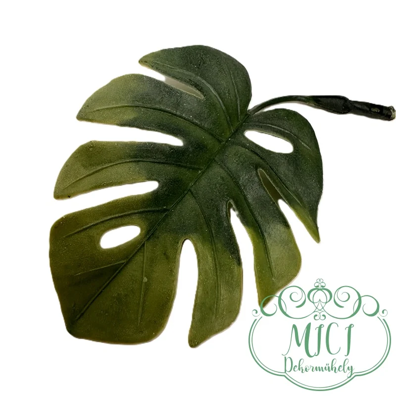 Pozsgás zöld növény rész; MONSTERA levél; barnás/hamvas/zöld;1db/csomag; ~9*7cm