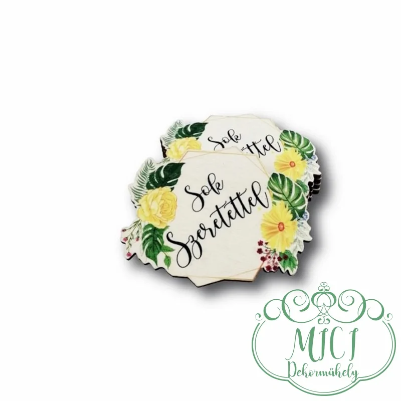 Sok szeretettel fa táblácska. A megadott ár 1db termékre vonatkozik. Fa táblák; amelyek kitűnő dekorációs kellékek; nagy választékban kaphatóak. Egyedi fa tábla; kiegészítője lehet asztaldísznek; koszorúnak; ajtó kopogtatónak; ajándéknak; home decornak. Kitűnő választás hűtőmágnes készítésének dekor részének. Szeretsz kreatívkodni? Az otthoni légkör egyedivé varázsolása fontos számodra? Akkor nálunk jó helyen jársz; nézz körbe dekorációs alapanyagaink között. Széles választékkal alapanyagok; dekorációs kiegészítők; kellékek megtalálhatóak nálunk.