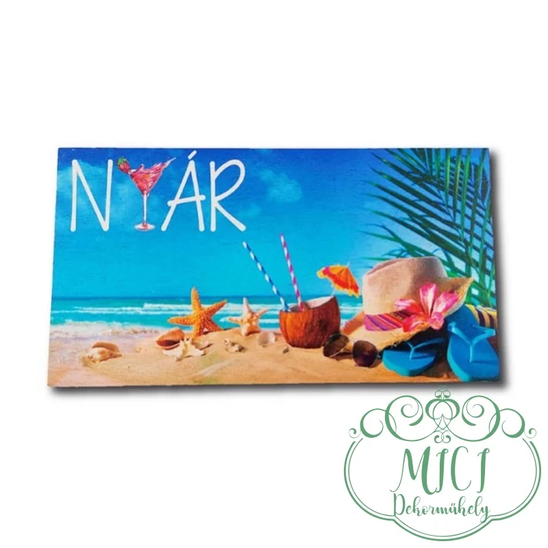 Egyedi fa tábla; kiegészítője lehet otthonod nyári dekorációjának; asztaldísznek; koszorúnak; ajtó kopogtatónak; egyéb dekorációs termékeknek. Felhasználhatod akár hűtőmágnes készítéséhez is.