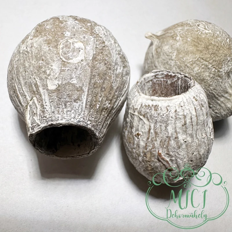 Szárított növény rész, Eukaliptus/Bell Gum; zúzmarás színben, amely kinézetét tekintve tobozra hasonlít, természetes dekorációs alapanyag. A termés segítségével számos koszorút, asztaldíszt vagy egyéb dekorációs készítményt feldobhatunk. Kiegészítője lehet adventi boxnak, koszorúnak, ajtókopgatónak, karácsonyi dekorációnak, szinte minden szezon dekorációjának, legyen az téli, tavaszi, őszi, nyári. Kis kiszerelésben vásárolható meg. 3-4db/csomag