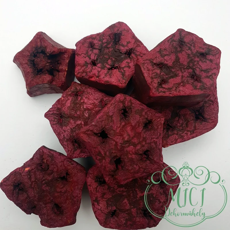Szárított növény rész, Mehogany szeletelt termés; amely kinézetét tekintve ötszög formájú szeletek, természetes dekorációs alapanyag. A termés alkalmazható koszorú, asztaldísz vagy egyéb dekorációs termék készítéséhez. Kiegészítője lehet adventi boxnak, koszorúnak, ajtókopgatónak, ajándéknak , karácsonyi dekorációnak, szinte minden szezon dekorációjának, legyen az tavaszi, őszi, nyári. A termés kis kiszerelésben van. mérettől függően3-5db/csomag; termések átmérője 1,8cm-4,5cm között változik, vastagsága: 0,8cm-2,5cm között