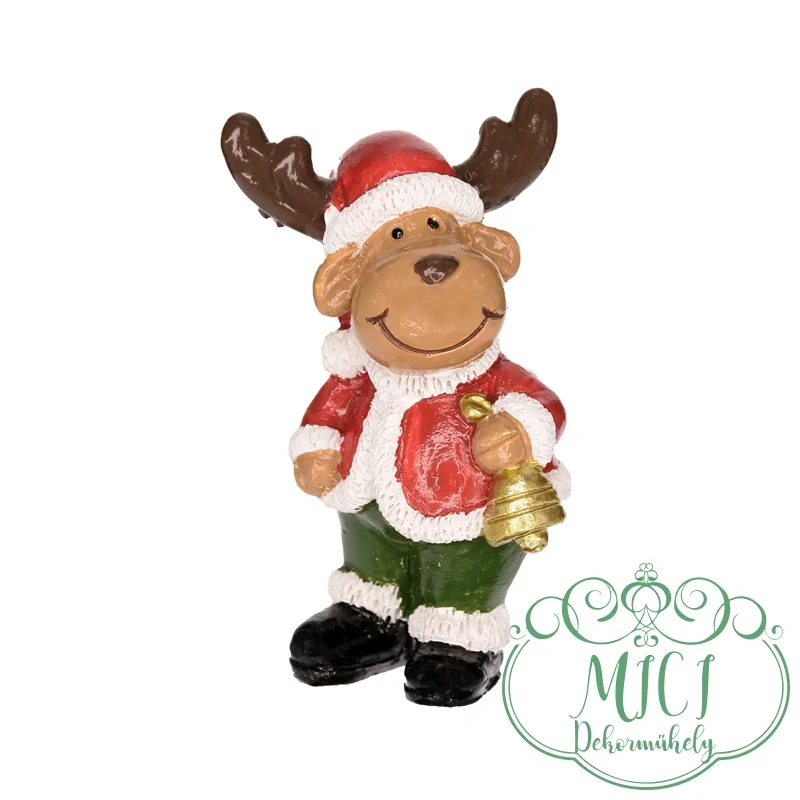 Szarvas; rudi csengővel a kezében; álló; barna-piros-zöld; 3,7×2,3×6,4cm