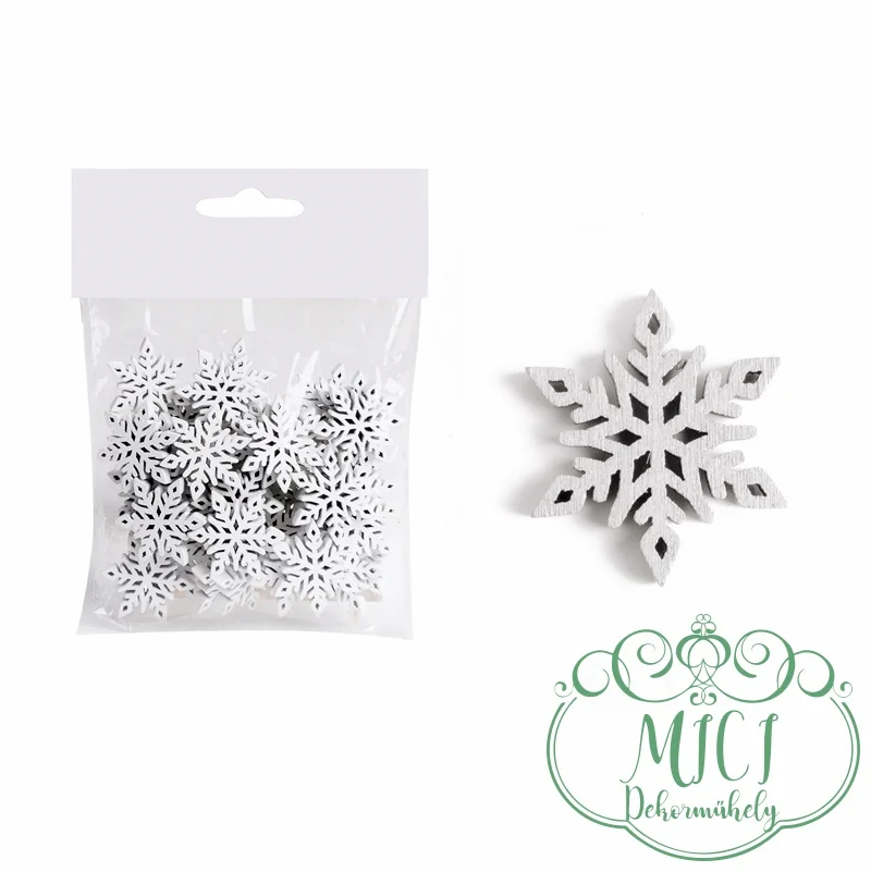 Téli/Karácsonyi fa kütyü; fa hópihe; cirádás; áttört minta; fehér; 3*3cm