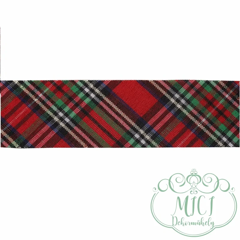Textil szalag; piros/zöld kockás; 38mm szélességű