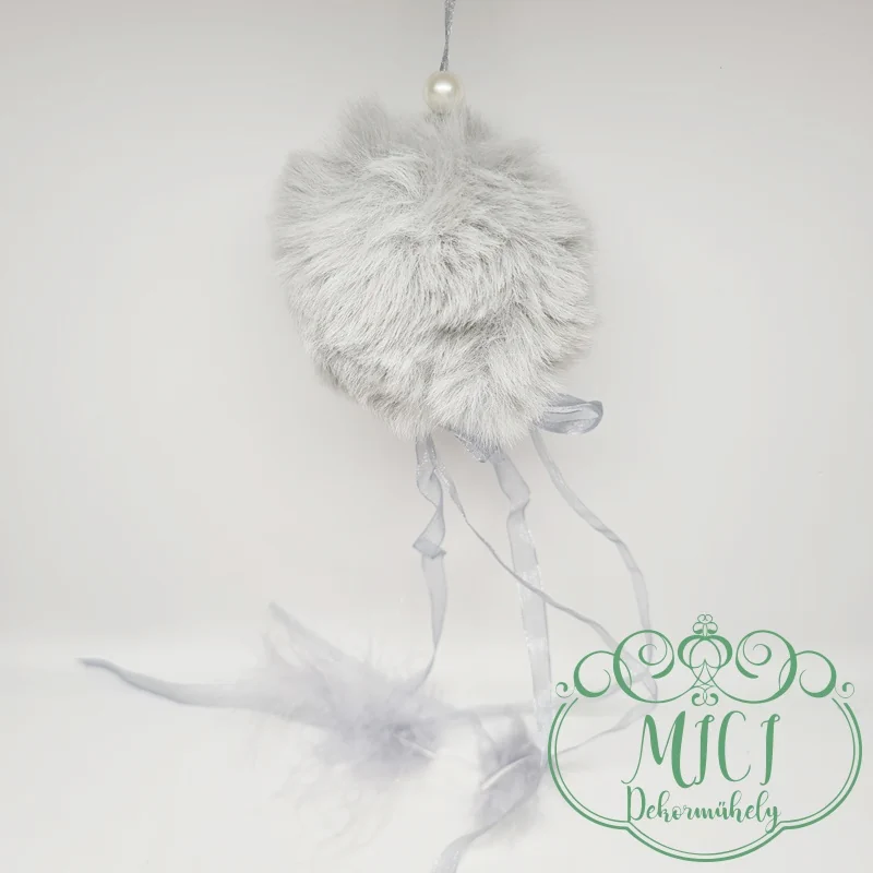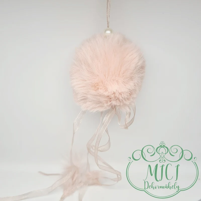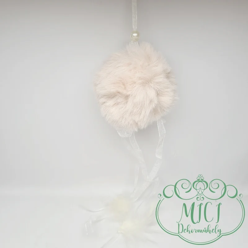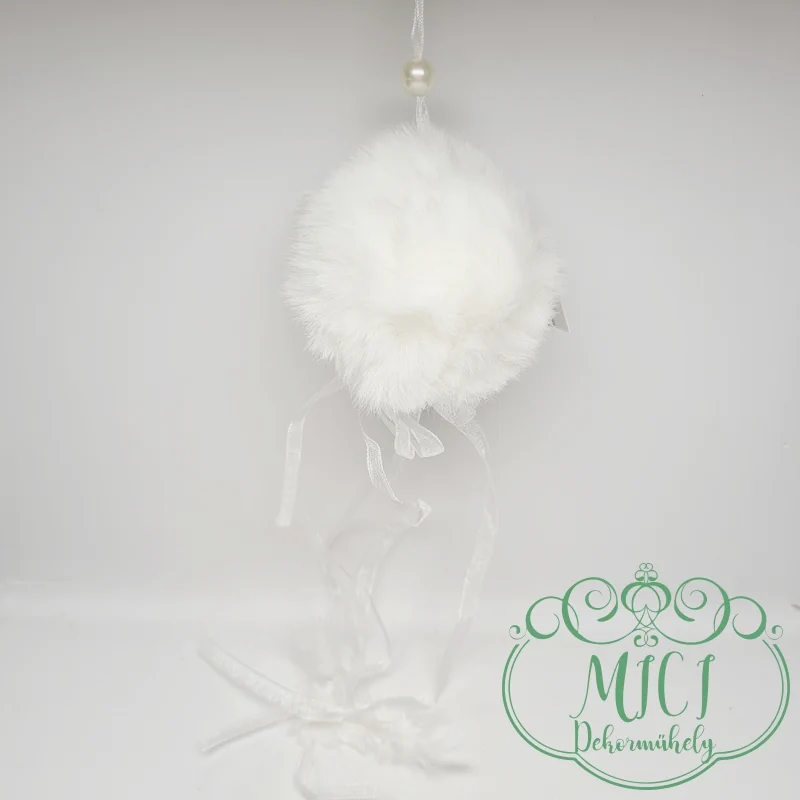 Textil szőr gömb; szőr gombóc; akasztós; 8cm átmérő; 41cm hossz