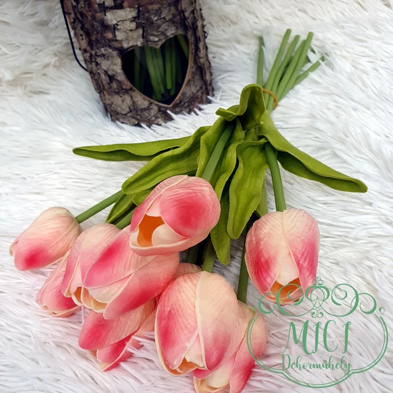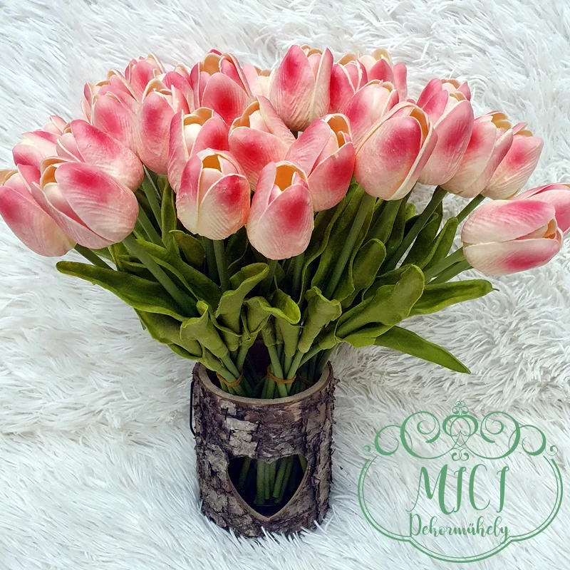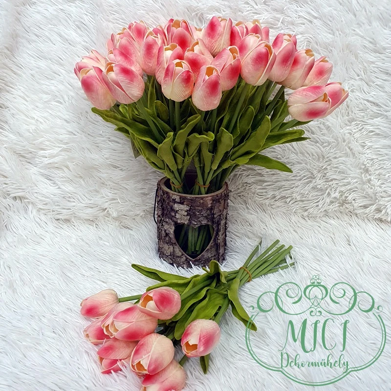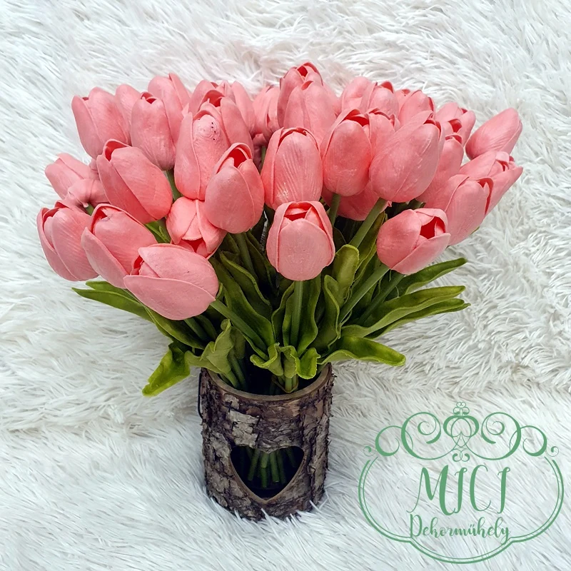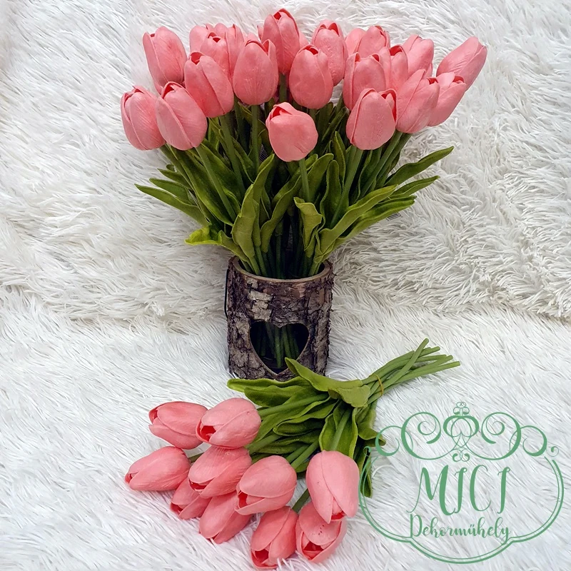 Real touch, élethű gumi tulipán. Kiegészítője lehet: csokor, asztaldísz, tavaszi dekoráció. Kreatív ajándék alapanyag lehet: születésnap, névnap, esküvő, anyák napja, egyéb esemény…