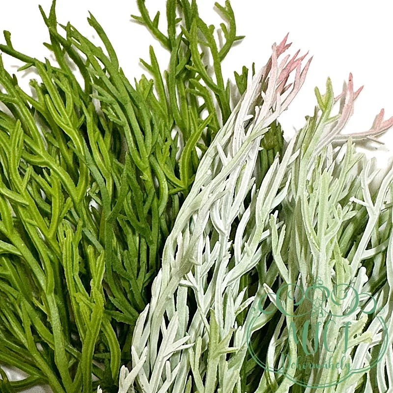 Zöld növény; tengeri növény; real touch; gumi legyező korall;zöld/hamvaszöld-rózsaszínes; 1ág/12ágacska (15cm)